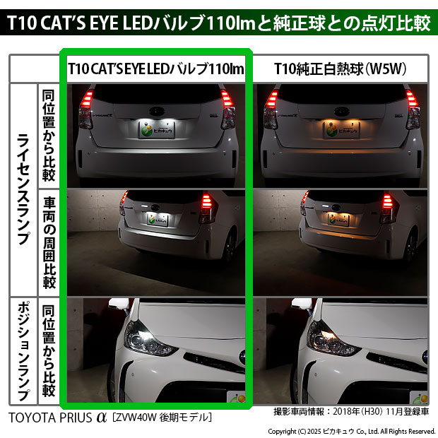 トヨタ プリウスα (40系 後期モデル) 対応 ライセンスランプ用LED T10 Cat's Eye LED BULB 全光束110ルーメン LEDカラー:ホワイト6200K 無極性 1セット2個入