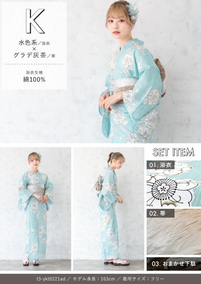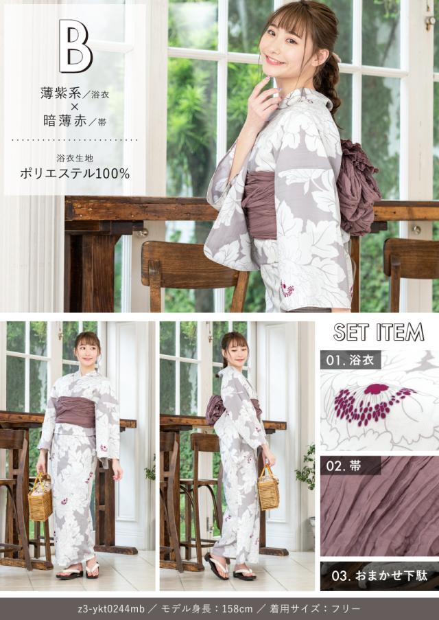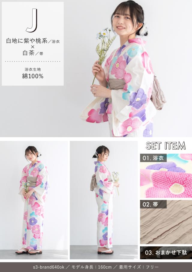 浴衣セット プチプラ 浴衣 3点セット レディース 帯 下駄 兵児帯 セット ニュアンス 牡丹 椿 鈴蘭 紫陽花 金魚 ストライプ 小花 水彩 女性 大人 中学生 高校生 おしゃれ 人気 S フリー 翌日配送 創美苑 送料無料