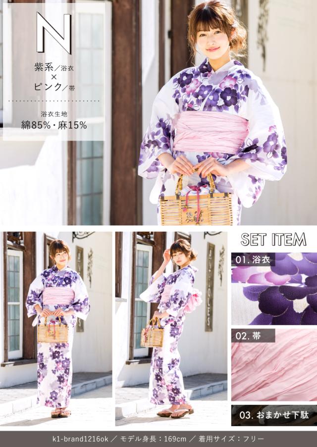 浴衣 綿100%%、ポリエステル100%、綿85%麻15%