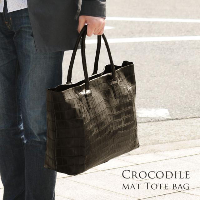 クロコダイルトートバッグマット加工ポーチ付き/メンズギフト(No.06000695-mens-1)