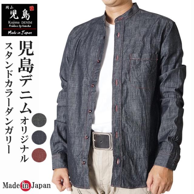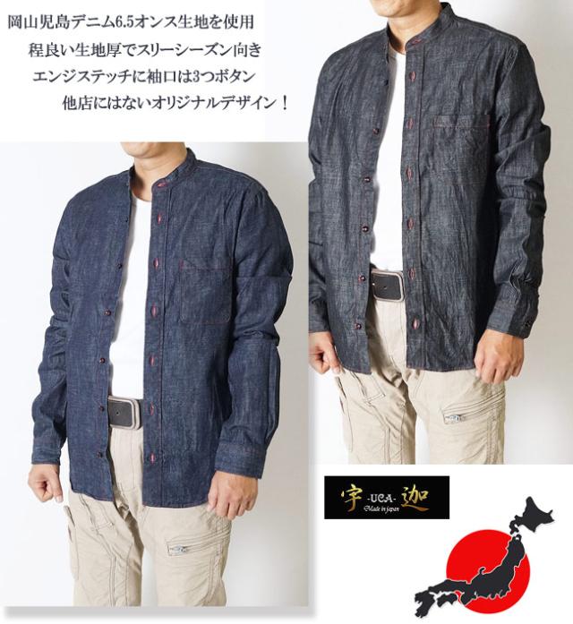 宇迦-児島デニムジーンズ ダンガリースタンドカラーシャツ長袖 6オンス日本製