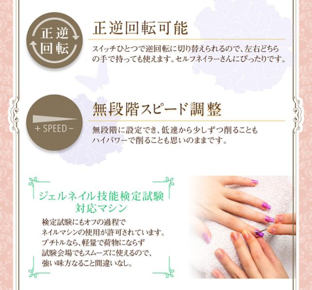 ジェルネイル オフ マシン ネイルマシン プチトルS 上級 プロモデル Petitor S ビットセット付 修理保証 雑誌掲載 コンパクト USB 冷却ファン ロック式 セルフ サロン プロ用 ルーター リューター プラモデル