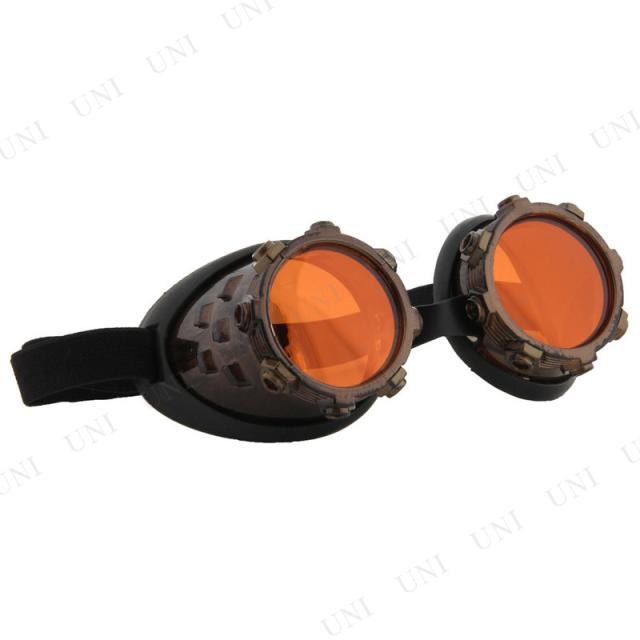コスプレ 仮装 おもしろメガネ(サイバースチームゴーグル) ゴールド×オレンジ プチ仮装 コスプレ小物 小道具 サングラス フリーサイズ
