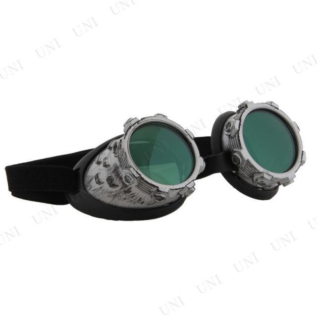 コスプレ 仮装 おもしろメガネ(サイバースチームゴーグル) シルバー×グリーン プチ仮装 コスプレ小物 小道具 サングラス フリーサイズ