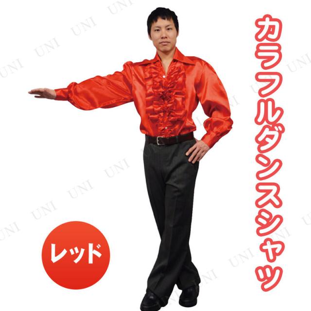 コスプレ 仮装 カラフルダンスシャツ レッド プレイアベニュー ダンス衣装 仮装 コスプレ衣装 職業 制服 ダンサー 大人 フリル付き