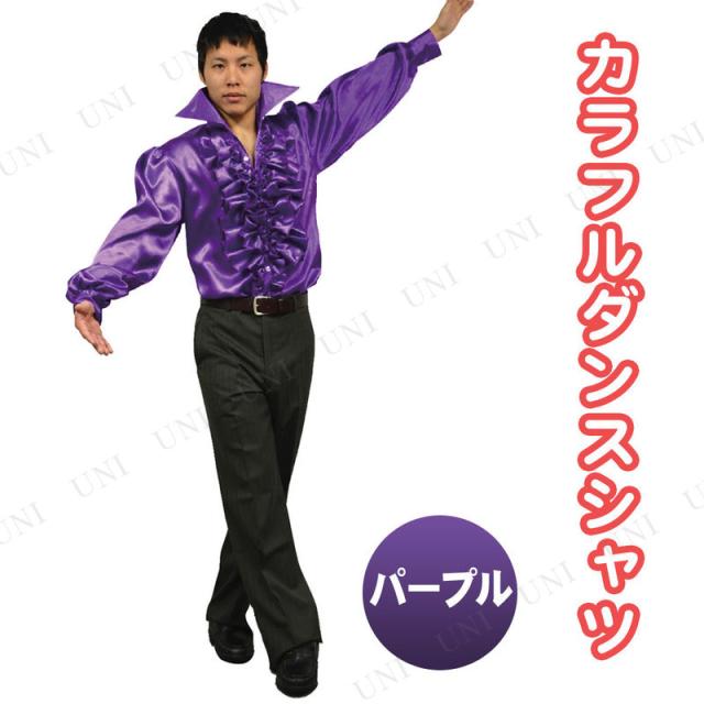 コスプレ 仮装 カラフルダンスシャツ パープル プレイアベニュー ダンス衣装 仮装 コスプレ衣装 職業 制服 ダンサー 大人 フリル付き