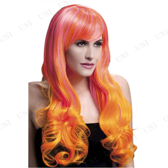 コスプレ 仮装 フィーバーエミリーウィッグ 71cm ロングソフトカール 2トーン ピンク&オレンジ Smiffy's コスプレ小物 フリーサイズ 大人 耐熱仕様 手洗い可 アジャスター付き