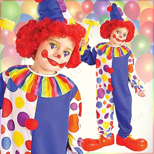 | 商品説明 | ポップな水玉模様の子供用ピエロコスチュームです。みんなを楽しませてくれる道化師にかわいく変身しちゃおう。着やすいジャンプスーツタイプ。男の子にも女の子にもおススメの仮装コスチュームです |