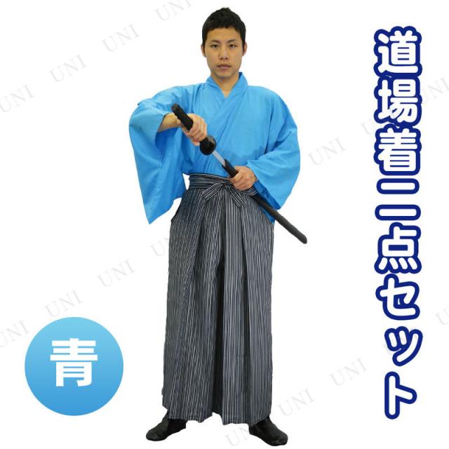 コスプレ 仮装 道場着二点セット 青 プレイアベニュー コスプレ衣装 仮装 時代劇 和装 武士 侍 奉行 大人 上衣 袴