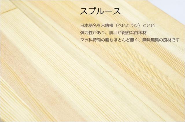 材質はスプルース、日本語名を米唐檜(べいとうひ)といい