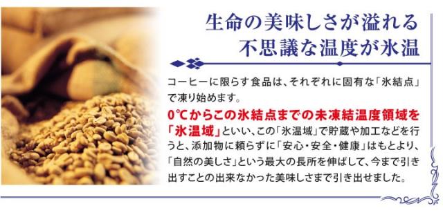コーヒーの生豆を“氷温域”と言われる温度帯で長期熟成をすることにより、コーヒー豆が本来持っているアミノ酸成分を十分に引き出して、アミノ酸たっぷりの生豆が誕生します。 この甘味がたっぷり溢れる状態の生豆を美味しく焙煎することにより、コーヒー本来の美味しさをさらに引き出しました。