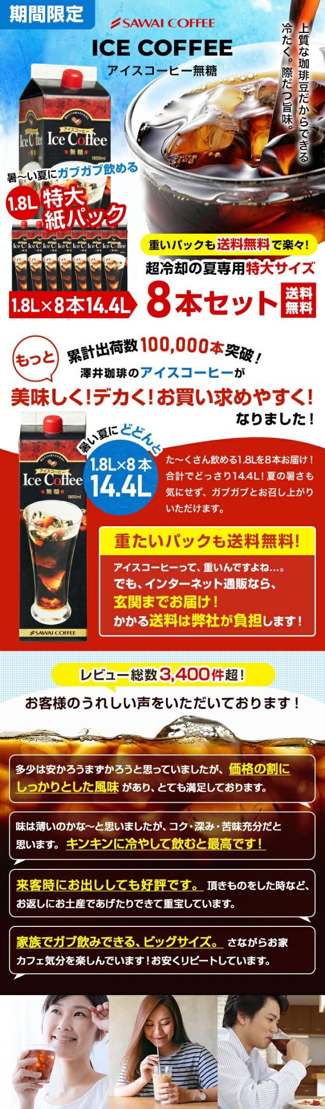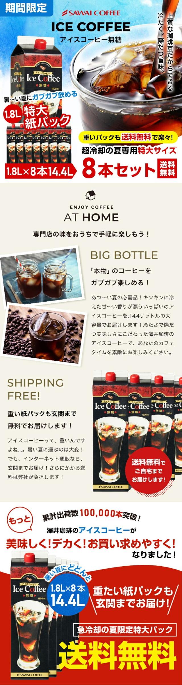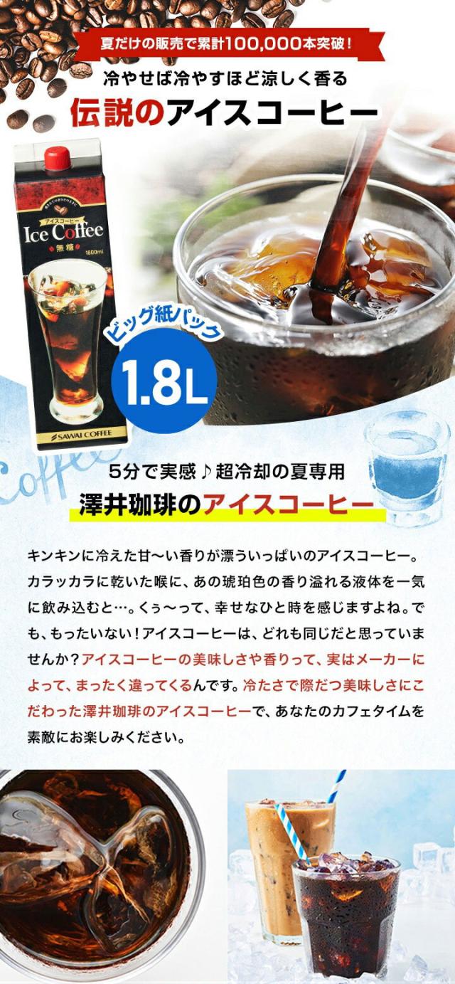 夏限定 アイスコーヒー リキッド 紙パック 無糖 澤井珈琲 送料無料 限界価格 5分で実感! 超冷却 夏専用 お得な 1800ml 8本セット ※同梱不可