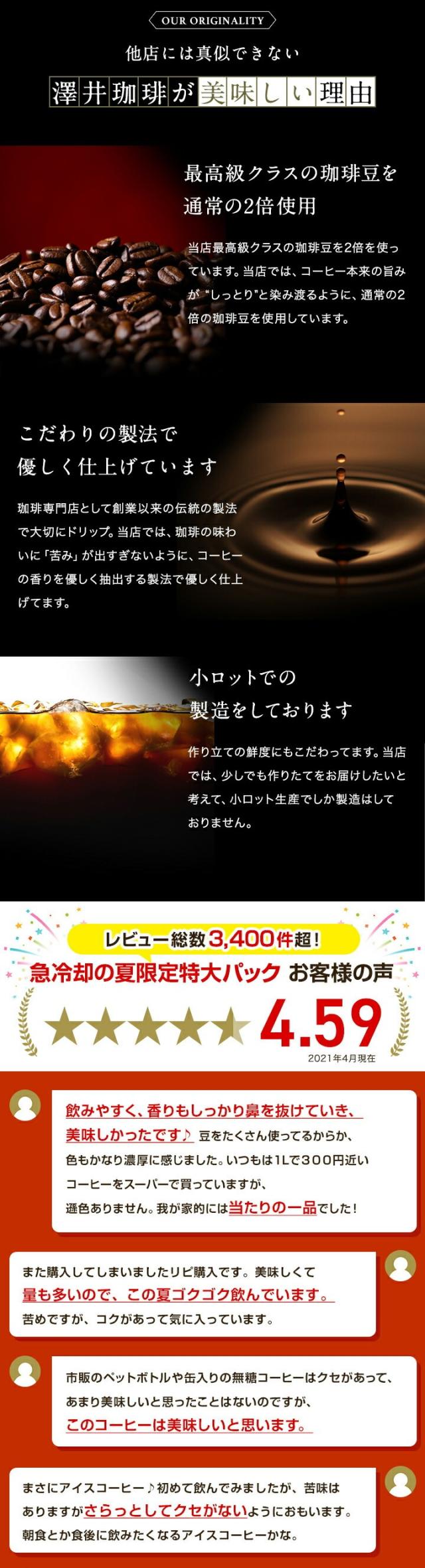 - 毎年夏はこのアイスコーヒーを購入しています。大きいサイズも有り難いし、コクもあって美味しいです。