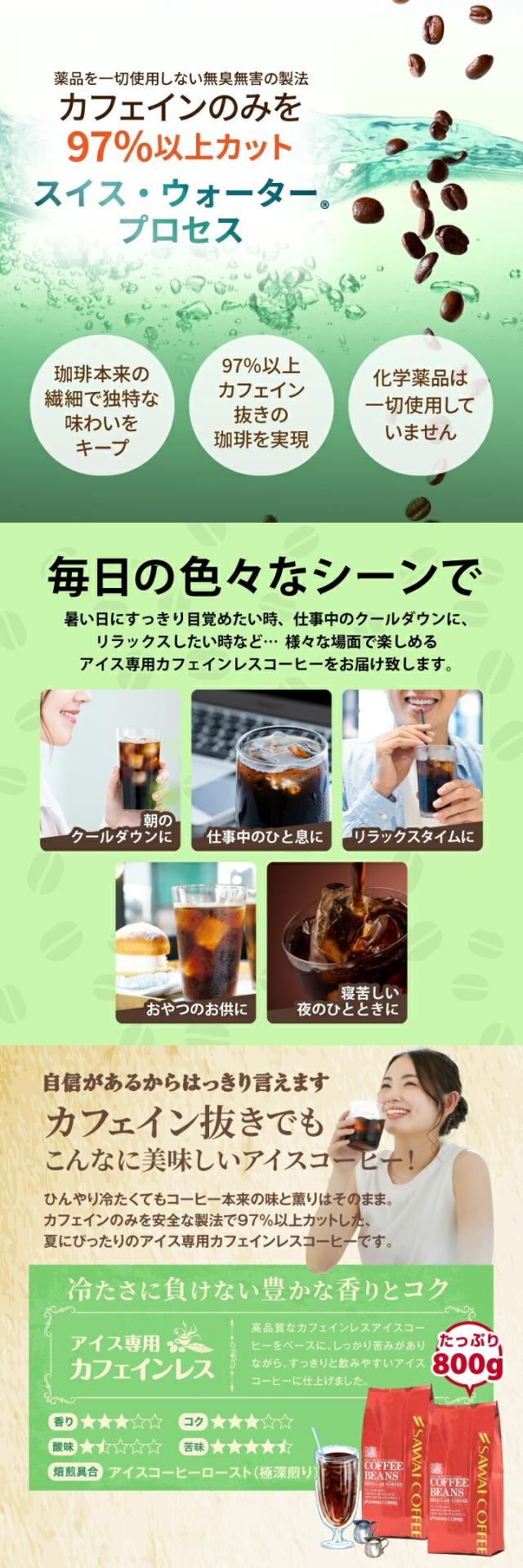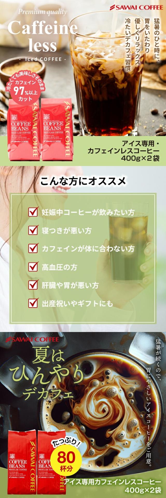 【澤井珈琲】送料無料 カフェインレスアイス 80杯分 カフェインレス アイスコーヒー 豆 粉 800g 水出し コールドブリュー 福袋 珈琲豆 中細挽き