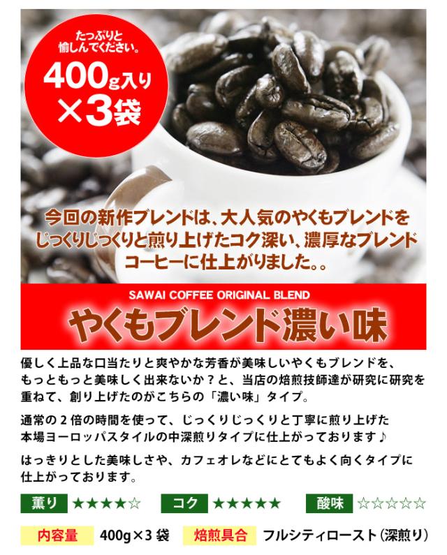| 内容量 | ・やくもブレンド濃い味 400g×3袋 |