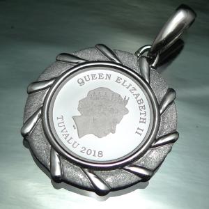 南太平洋の英連邦独立国・ツバル発行の1/10オンス純プラチナコインに、Pt900製の枠が付いたペンダントトップです。