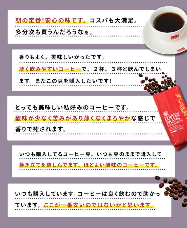 | こんな方にオススメです | 1. 家庭や職場でのコーヒータイムのために 多くのお客様が、家庭や職場でリラックスしたコーヒータイムを楽しむために、この商品を購入しています。飲みやすく、香り豊かな味わいが、日常のひとときをより豊かにしてくれます。家庭やオフィスでのホッとする時間を大切にしたい方におすすめです。 2. コストパフォーマンスの高さを求めて このコーヒーは、リーズナブルな価格でありながら、量も多く、品質が高いことで、多くの方に選ばれています。特に、毎日コーヒーを飲む習慣がある方にとって、コスパの良さが非常に魅力的です。経済的で美味しいコーヒーを楽しみたい方にぴったりです。 3. 朝の一杯を大切にするために 毎朝のモーニングコーヒーを楽しむために、この商品を購入する方が多いです。香りが良く、スッキリとした後味で、一日のスタートにふさわしい一杯を提供します。朝の習慣として、リフレッシュしたい方におすすめです。 |