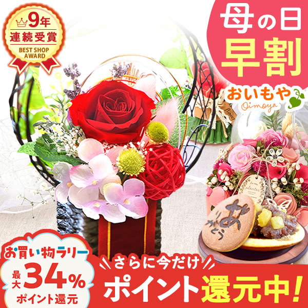 母の日 早割 花とセット プリザーブドフラワー プレゼント 送料無料 お菓子 スイーツ 洋菓子 和菓子 プリザーブドフラワー アレンジ インテリア 花束 どら焼き バウムクーヘン ギフト おいもや 母の日 花とセット 母の日 ギフト 母の日 花ギフト 母の日の花