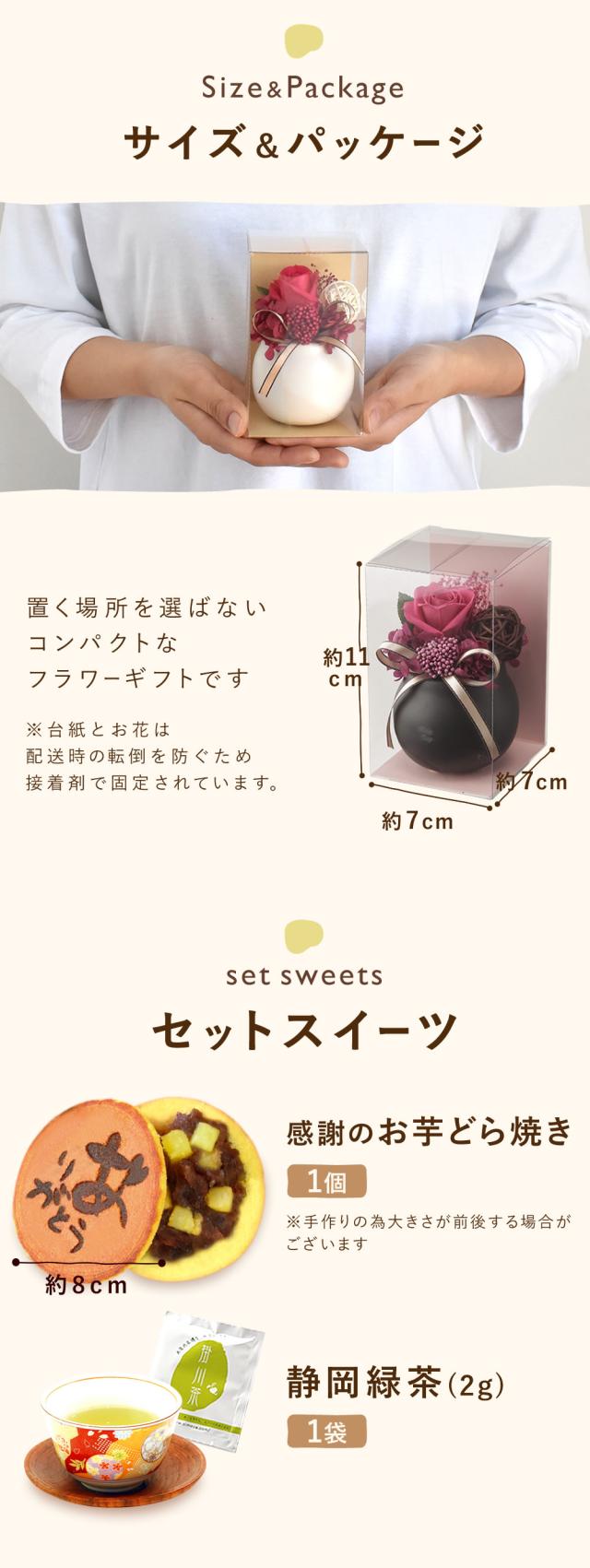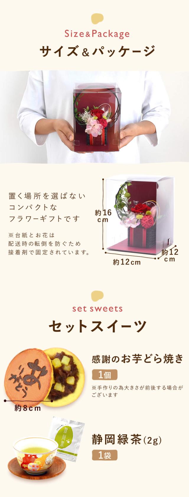 誕生日プレゼント お祝い 送料無料 お菓子 スイーツ 洋菓子 和菓子 プリザーブドフラワー アレンジ インテリア 花束 どら焼き バウムクーヘン お礼 退職祝い お供え 敬老の日 ギフト おいもや gift-aset