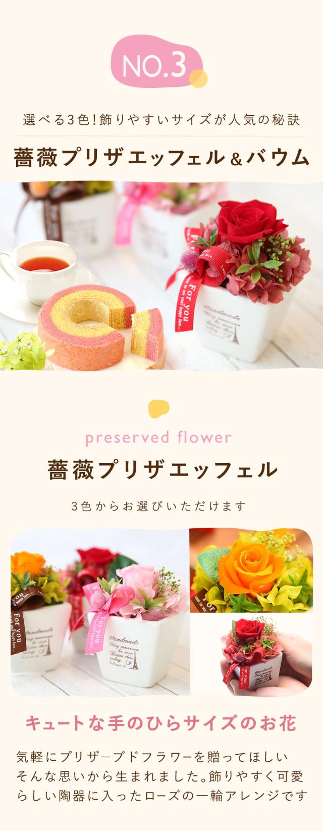 3.薔薇プリザエッフェル&スイーツセット 4.ローゼリウムプリザ&スイーツセット |