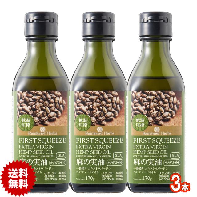 ヘンプシードオイル 麻の実油 エキストラバージン ヘンプオイル 170g 3本 リトアニア産 麻の実オイル ヘンプ油 ヘンプシード油 低温圧搾一番搾りExtra virgin Hemp Seed Oil