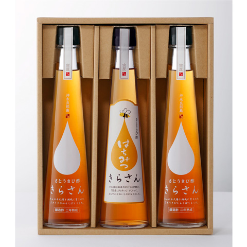 | きび酢きらさん 2本 | きび酢きらさん 3本 | はちみつきび酢 2本 | ||