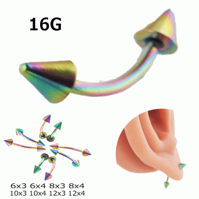 ボディピアス バナナバーベル 16G 1.2mm アイブロー へそピアス レインボーカラー 片耳一個売り サージカルステンレス ボディーピアス