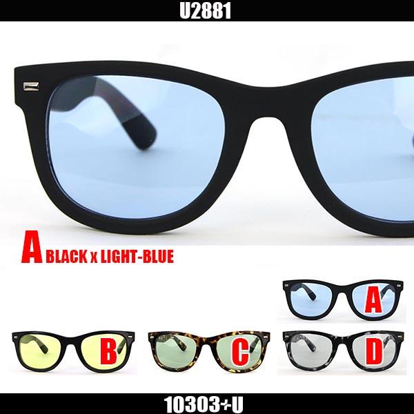 送料無料 サングラス メンズ レディース ライトカラー ウェリントン 人気 デザイン うすい色 薄い色 うすいカラー ブルー 2881