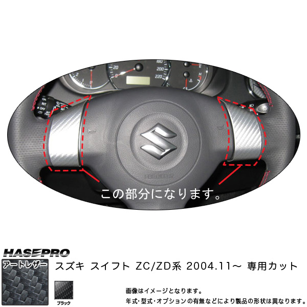 【メール便対応】ハセプロ:マジカルアートレザー ステアリングホイールスイッチパネル BK スイフト ZC/ZD系(2004.11〜) LC-SWSZ1