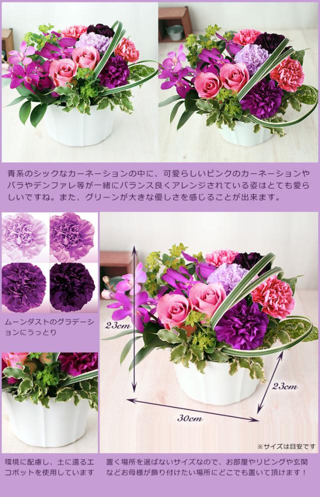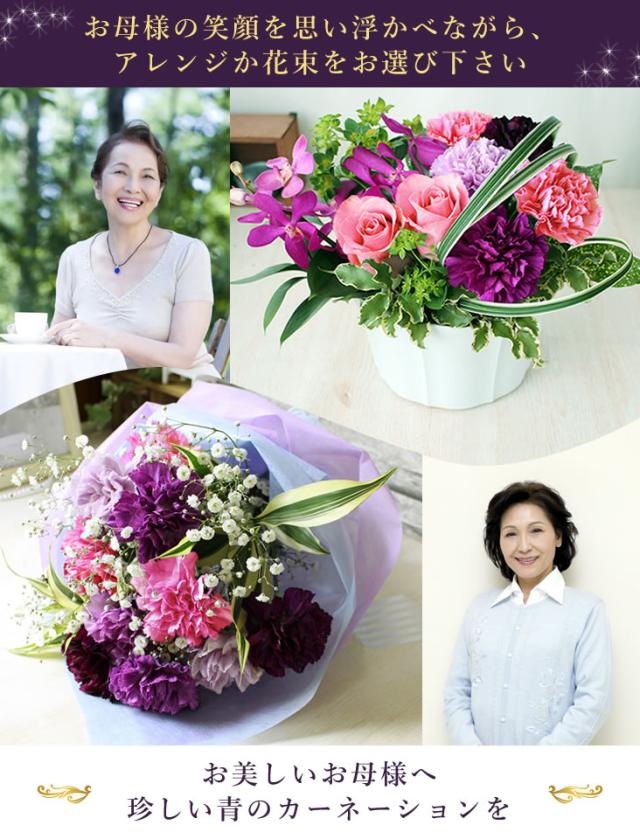 お美しいお母様へ、シックで上品な青のカーネーションを。