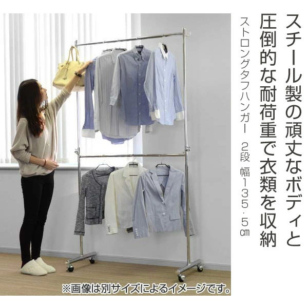 パイプハンガー ストロングタフハンガー 幅135.5cm 2段 スチール製 キャスター付 組立式 ( タフハンガー コートハンガー ハンガーラック 2段パイプハンガー 洋服掛け 衣類収納 オフィス家具 ポールハンガー )