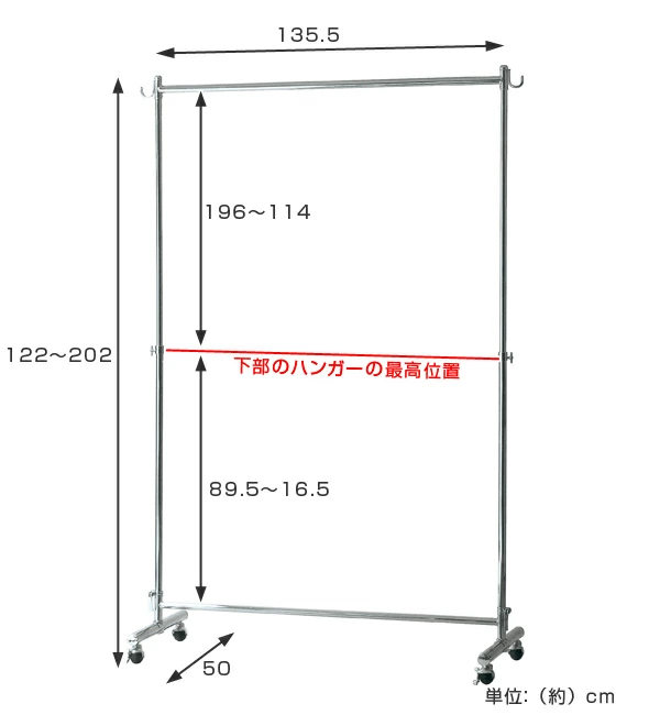 | サイズ | 約 幅135.5×奥行50×高さ122〜202(cm) |
