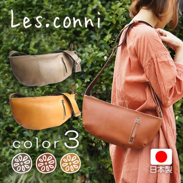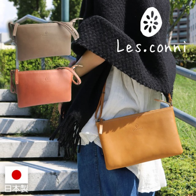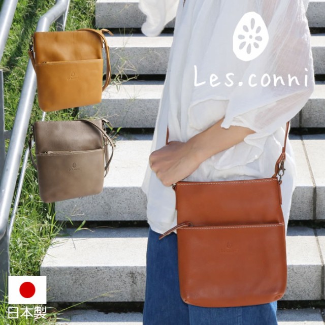 ショルダーバッグ レディース 斜めがけ 日本製 本革 牛革 縦型 Les.conni ドット柄 水玉 女性 大人 キュート かわいい かばん 鞄