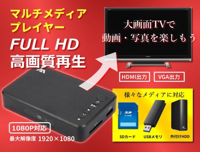 フルHD 対応(最大1920x1080)マルチメディアプレーヤー SD/USB/HDD HDMI/VGA対応 MP400