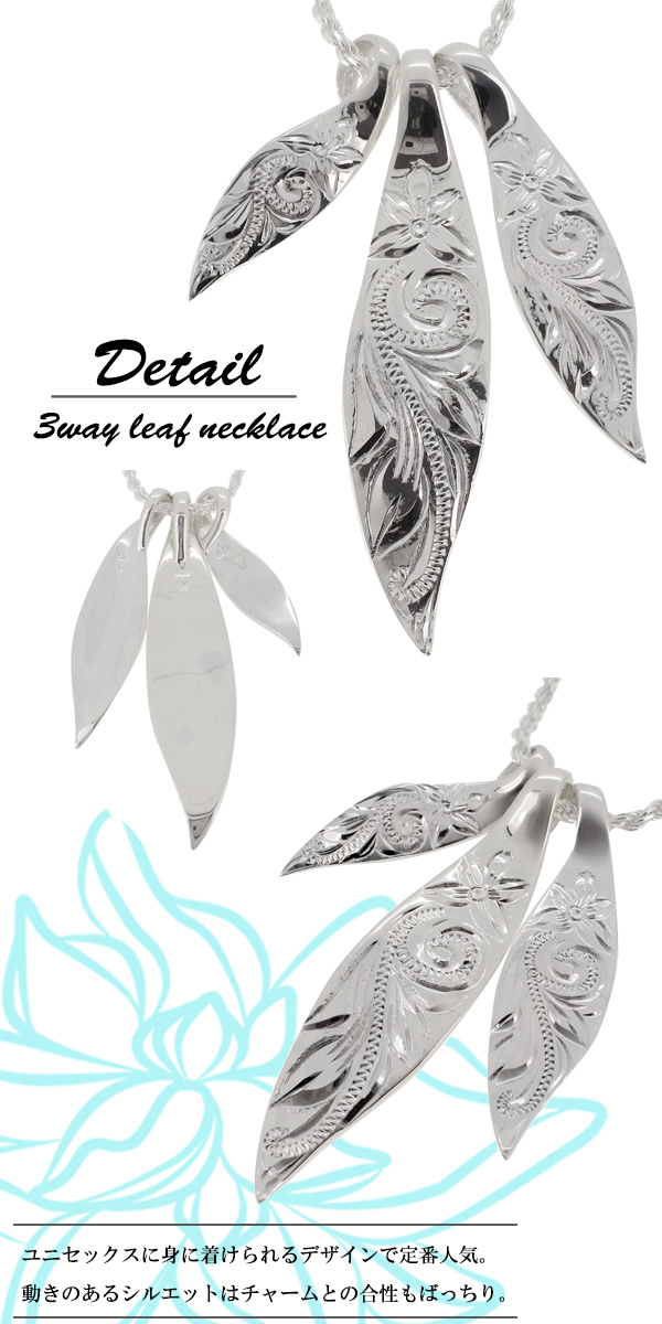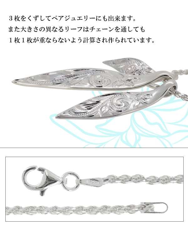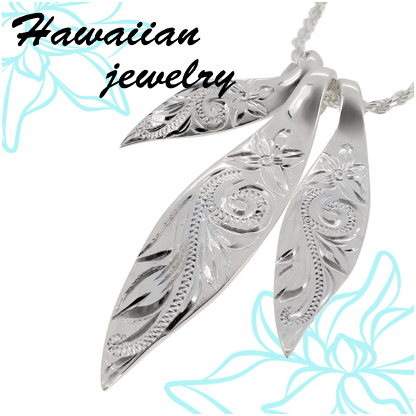 【ハワイアンジュエリー】手彫り3リーフ シルバーネックレス/レディース 葉 ペンダント 首飾り 送料無料
