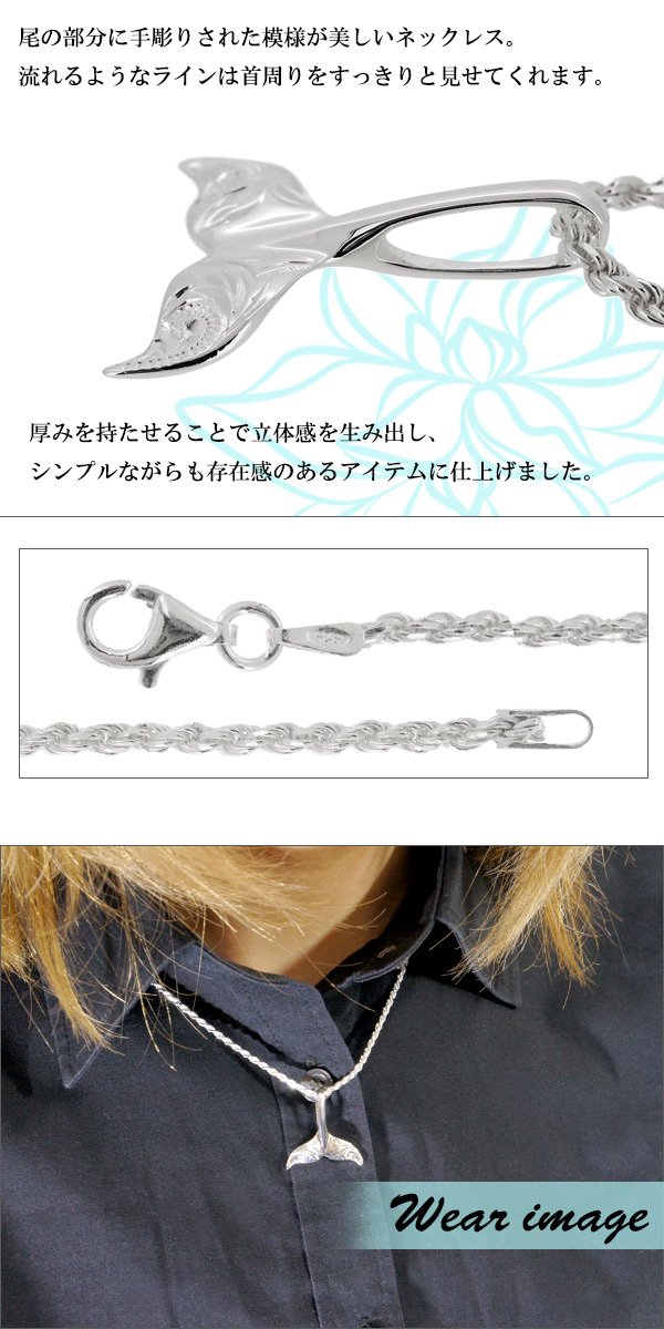 【ハワイアンジュエリー】手彫り ホエールテール シルバーネックレス SILVER925 銀の蔵 レディース ネックレス Ladies Necklace 女性用首飾り ペンダント 十字架