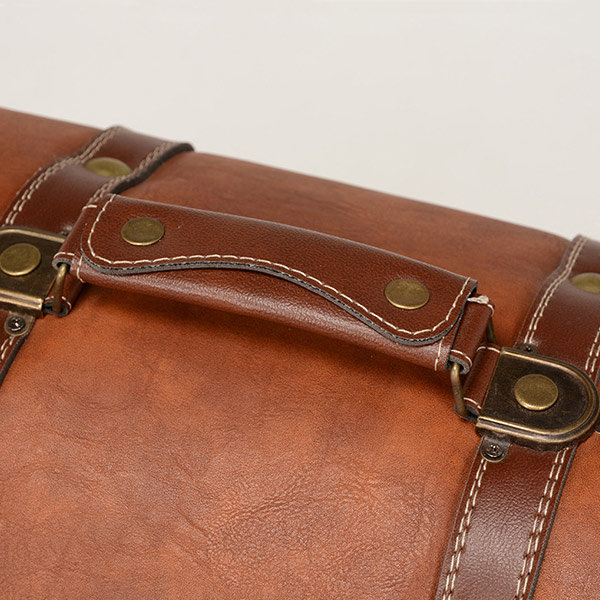 オールドスタイルの旅行用トランクをイメージした、ユニークなデザインの小物入れです。取っ手や角部分の補強革など、古き良き時代のディテールを再現した造りで、インテリアに旅心を演出します。収納だけでなく、撮影小物としてもおすすめです。