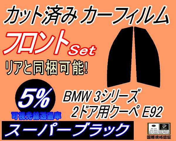 【送料無料】フロント (s) BMW 3シリーズ 2ドア クーペ E92 (5%) カット済みカーフィルム 運転席 助手席 三角窓 左右セット スモークフィルム フロントドア 車種別 スモーク 車種専用 成形 フイルム 日よけ 窓 ガラス ウインドウ 紫外線 UVカット WA20 WB35