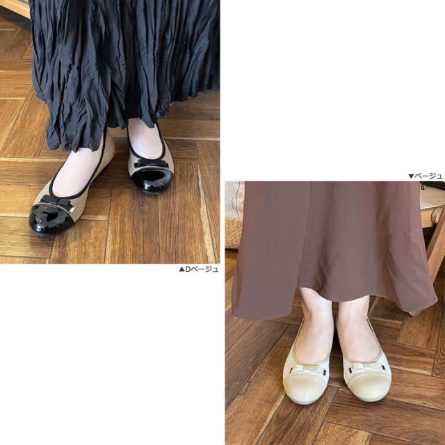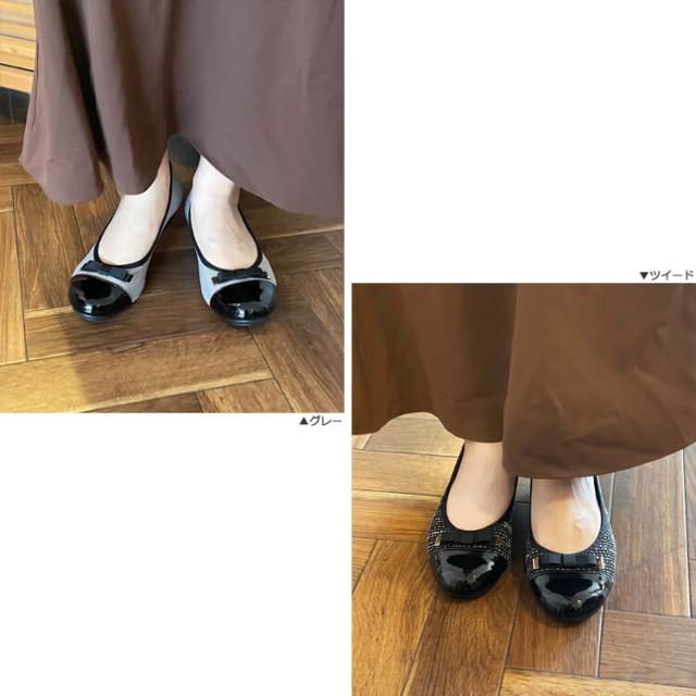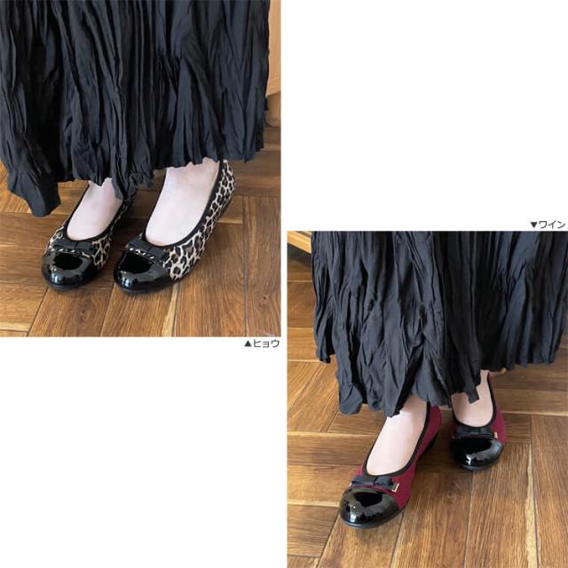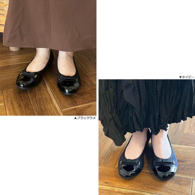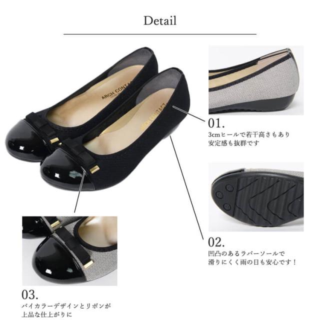 全品送料無料一部除く バイカラー リボン パンプス【即納】日本製 究極の履き心地 コンフォートシューズ 低反発 厚底 軽量 ウェッジソール
