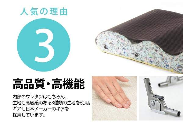 背部・頭部・脚部がそれぞれ14段階リクライニング