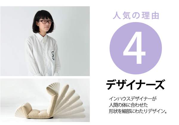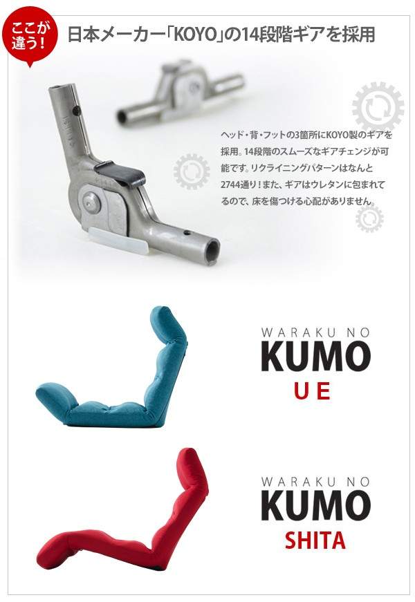 なんと和楽の雲は2744通りの形あらお好みの位置へ自在にリクライニングです。