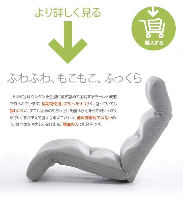 送料無料 和楽の雲 日本製 座椅子 リクライニング チェアー ザイス リクライニング 1人掛け 布張り
