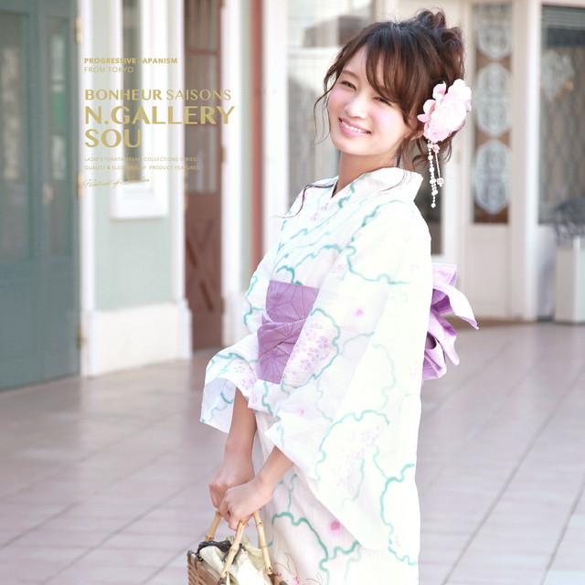 浴衣セット レディース レトロ 浴衣セット 大人 3点セット 白 ホワイト 紫 桜 金魚 雪輪 ラメ 綿麻 半幅帯 女性 ボヌールセゾン