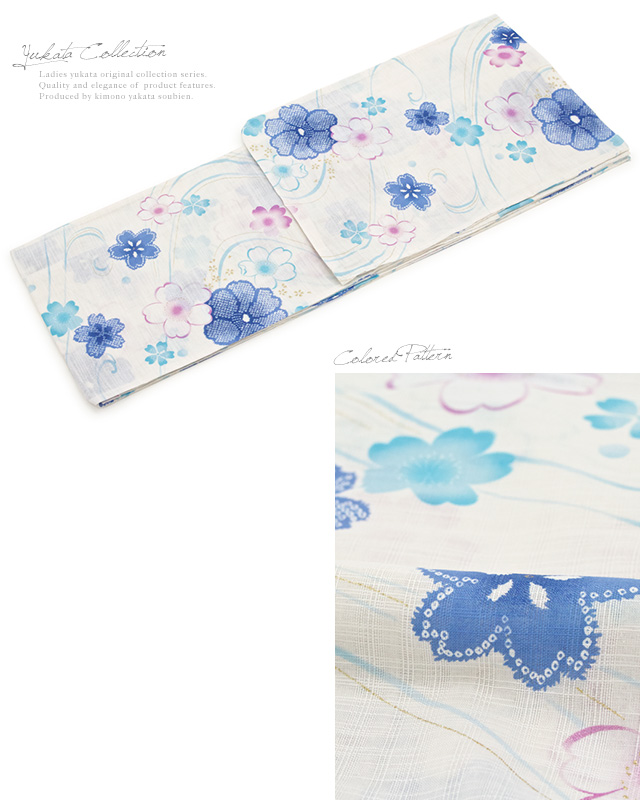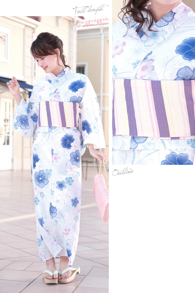 浴衣セット レディース レトロ 浴衣セット 大人 3点セット 白系 ホワイト 青 アイボリー 椿 桜 綿 ラメ 綿 半幅帯 女性 ボヌールセゾン S フリー