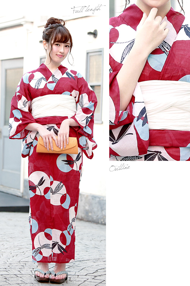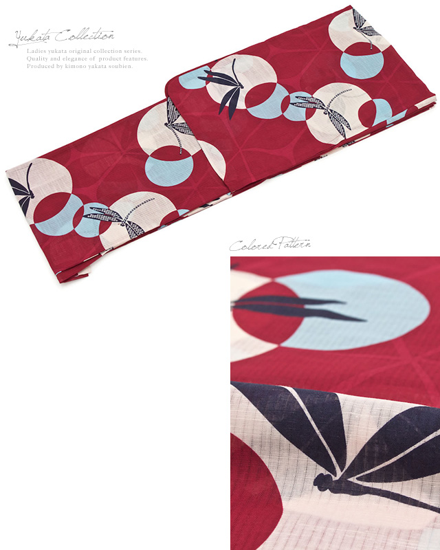 浴衣セット レディース レトロ 浴衣セット 大人 3点セット 赤 レッド 白 蜻蛉 トンボ 綿 絽 兵児帯 女性 ボヌールセゾン