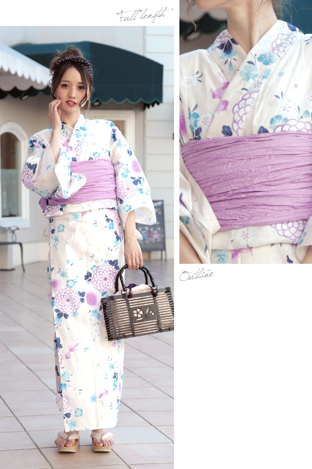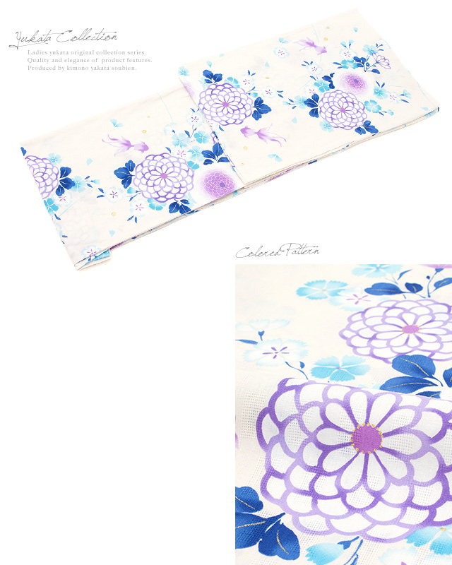 浴衣セット レディース レトロ 浴衣セット 大人 3点セット 白系 ホワイト 紫 菊 金魚 撫子 綿 ラメ 兵児帯 女性 ボヌールセゾン
