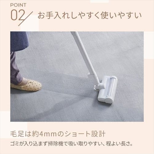 - 猫が3匹います。 和室ですが畳がボロボロになるのでカーペットをひいています。 たまにうんちで、汚したりするので洗えるもので安価なものを探していました。 掃除機でもくっついたりしないので助かってます。 猫の毛は掃除機ではとりきれないのでパクパクローラーと併用してます。 毛もとりやすくて気に入りました。