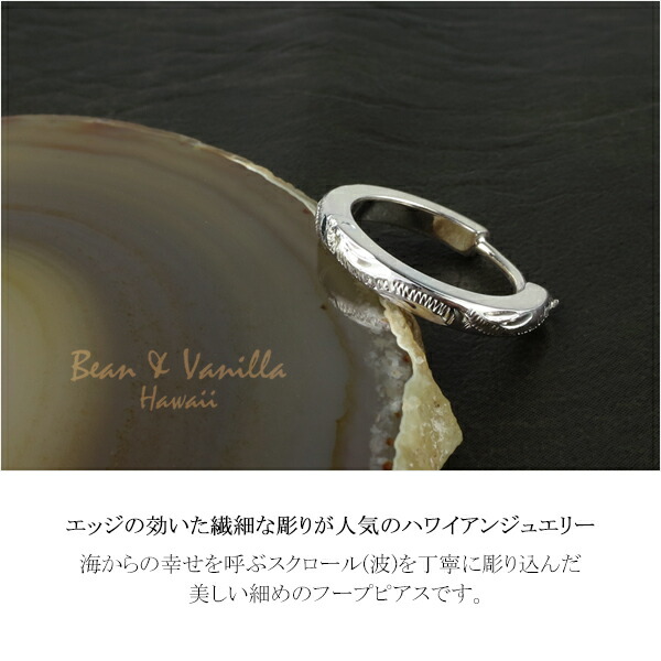 ハワイアンジュエリー 手彫り スクロール フープピアス 1P 片耳用 シルバー925 ピアス ハワイアンピアス ハワイ 海 波 自然 綺麗 上品