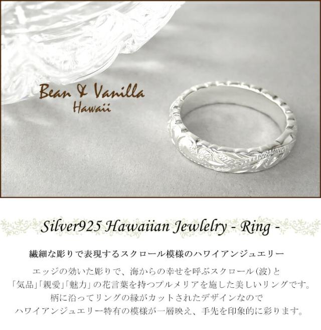 ハワイアンジュエリー プルメリア スクロール シルバー925 リング 7〜18号 Bean&Vanilla シルバーアクセサリー レディース ファランジ 指輪