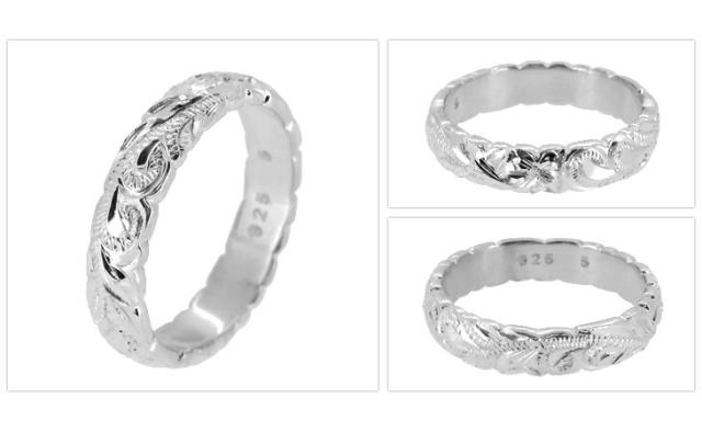 人気のスクロール(波)とプルメリアが彫られたシルバーリング。